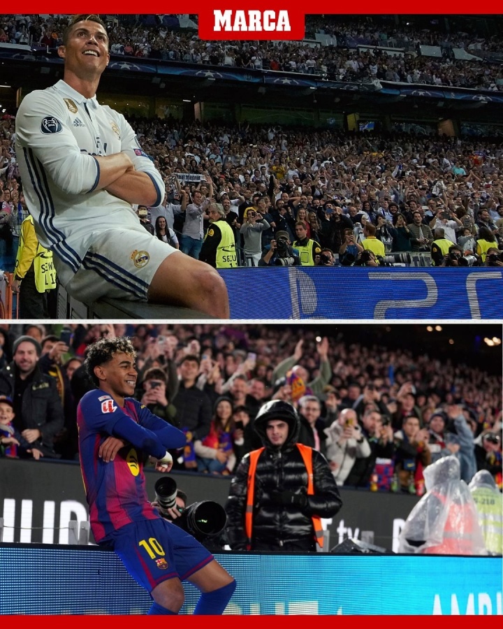 体育资讯-马卡晒亚马尔与C罗相似庆祝:有些画面独一无二,但会传承👑